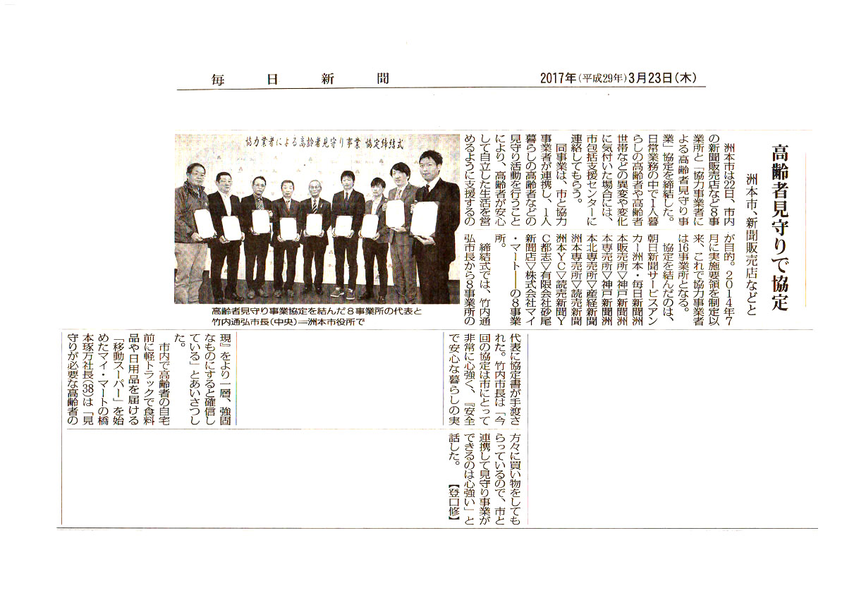 _____________________ [ニュースリリース] 2017年12月21日  ̄ ̄ ̄ ̄ ̄ ̄ ̄ ̄ ̄ ̄ ̄ ̄ ̄ ̄ ̄ ̄ ̄ ̄ ̄ ̄ ̄ 【移動スーパーが新たな活動を開始! 南あわじ警察署より受嘱】 当社はこのたび、南あわじ警察署から「高齢者安全・安心サポート隊」として委嘱を受け、2018年1月1日より活動を開始することとなりましたので、ご案内申し上げます。